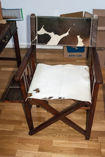 Andreas claimed he would never have cow fur in his house. This started breaking down in Uruguay with a purse. Now I have three or four cow fur purses, a rope of cow fur stars, and cow fur scraps to play with. A couple of weeks ago, Andreas said," We're here. We might as well buy that cow fur chair you've been eying forever." So, this folding chair from Kinda Home is now in my house!
