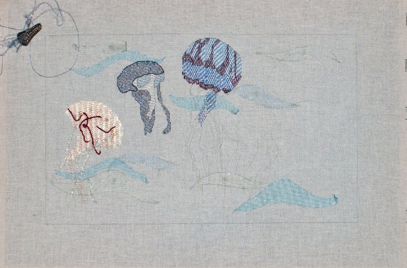 I'm finished with the waves. Now I can concentrate on finishing off the jellyfish. The far left one is the only one complete.